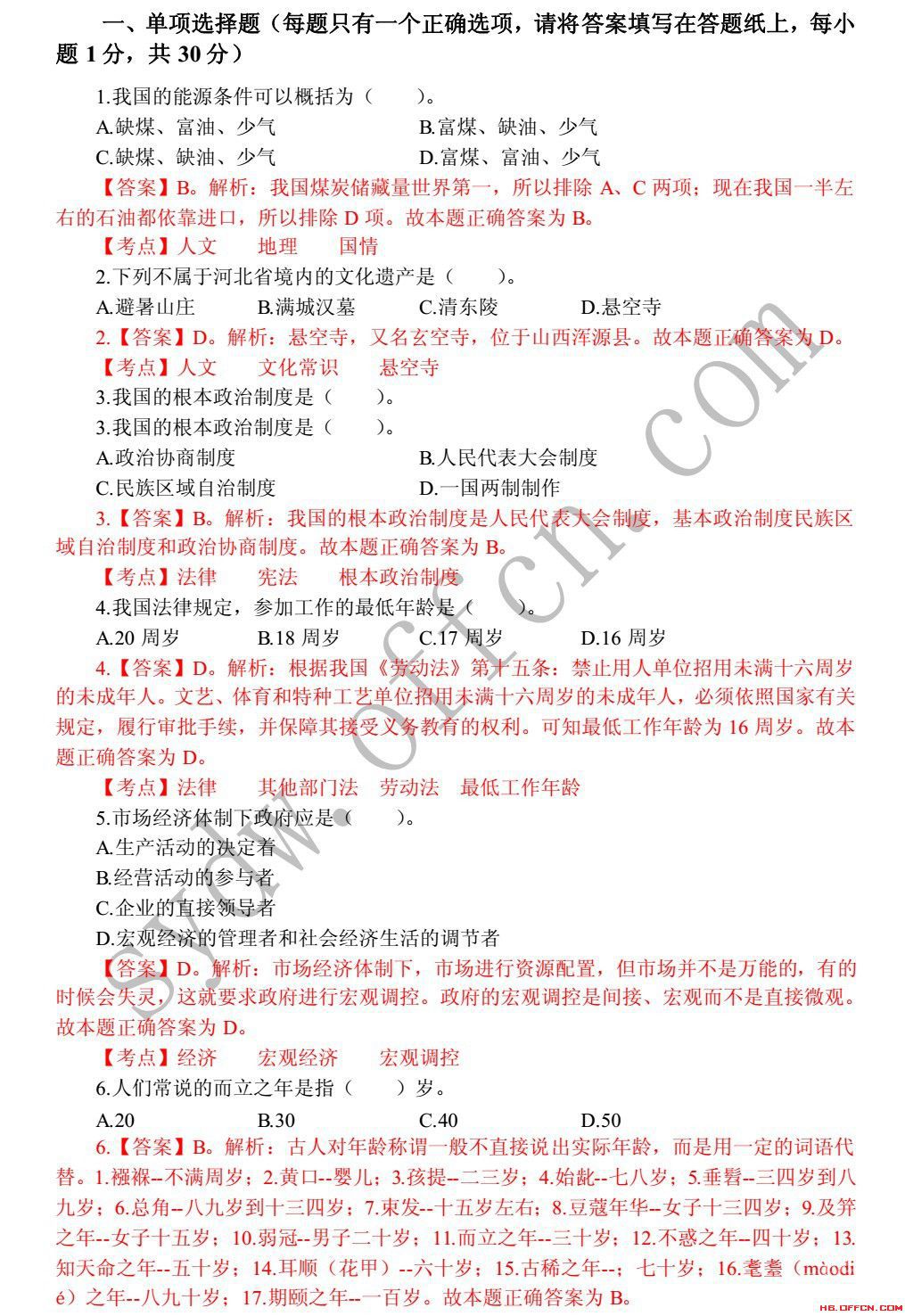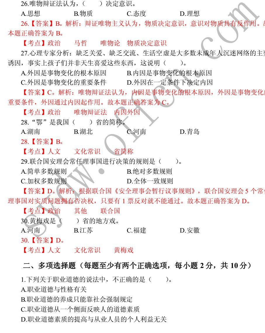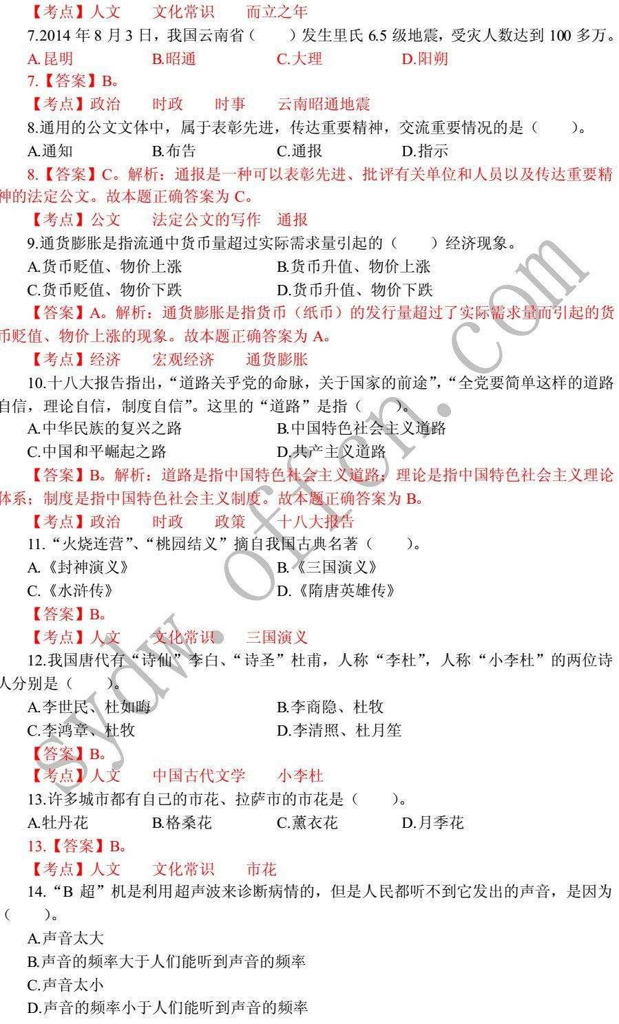 【真题】2014年邯郸市事业单位(综合类)真题解析