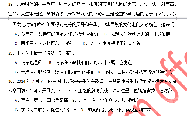 点击进入:2014下半年福建事业单位招聘真题笔试答案(8月23日)