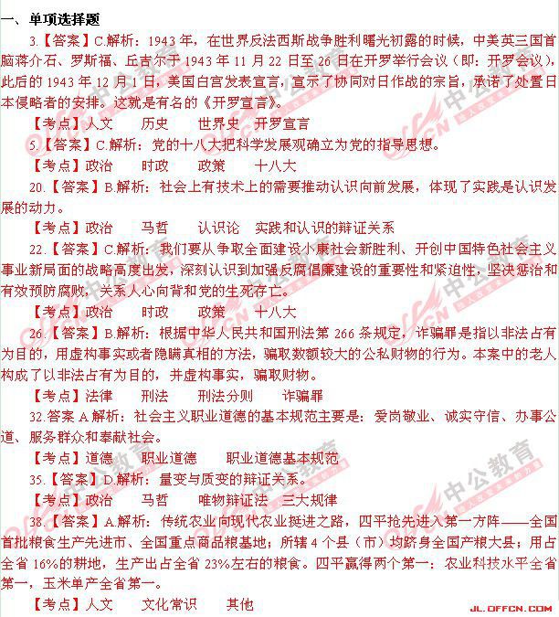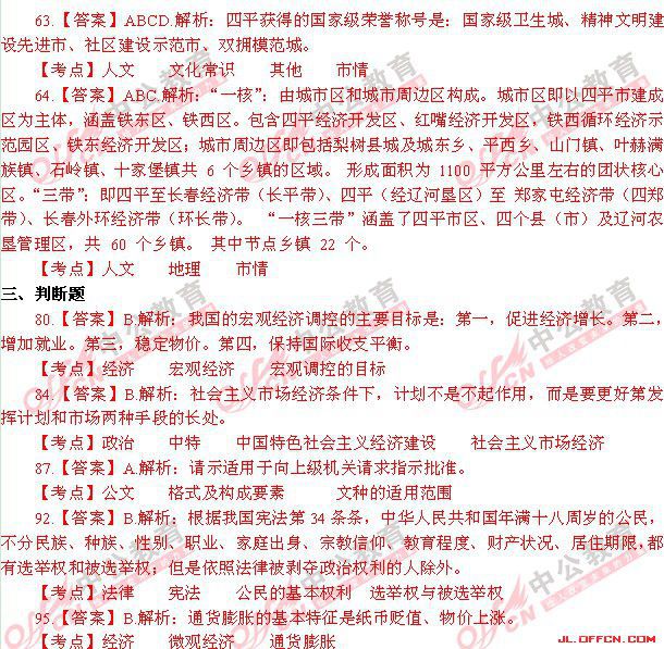 2013四平市事业单位《通用知识》笔试真题答案