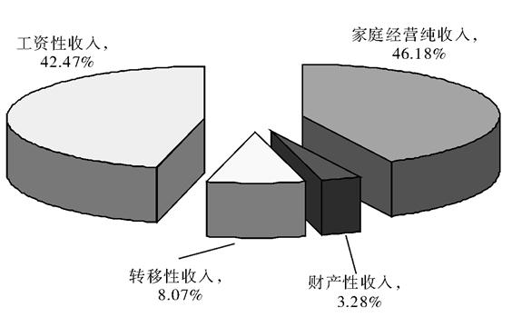 2011年全国农村居民人均纯收入6977元,比上年增加1058元。人均工资性收入2963元,比上年增加532元。分一、二、三产业看,人均家庭经营第一产业纯收入2520元,增加289元。其中,人均农业纯收入1897元,增加173元,人均牧业纯收入463元,增加107元;人均第二产业纯收入193元,增加11元;人均第三产业纯收入509元,增加90元。人均转移性收入563元,增长24.4%,增速比上年提高10.6个百分点,其中,人均离退休金和养老金收入190元,增长68.6%。 [事业单位真题]