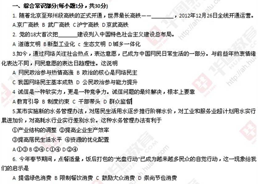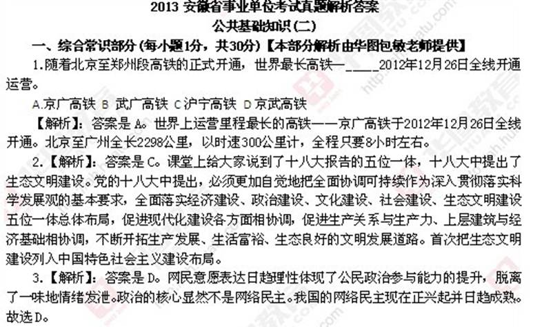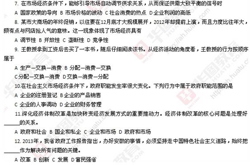 12.【解析】:答案是C。安徽省《政府工作报告》中提到:“办好安徽的事情,必须坚持走中国特色社会主义道路,始终把发展作为解决所有问题的关键”。