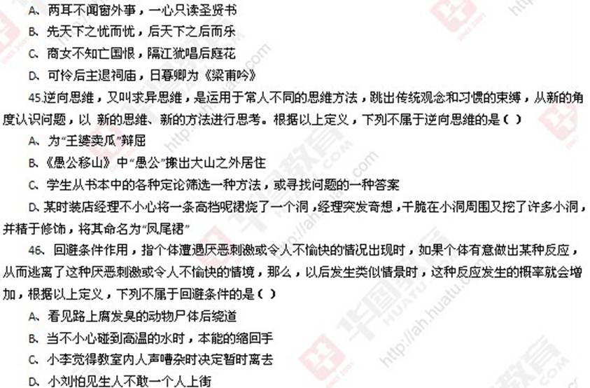 【解析】知觉防御的要件就是忽视与个人需要无关的外物。ACD三个选项中的主体或逃避或回避。B选项是范仲淹《岳阳楼记》中的名句,体现着作者忧国忧民的情怀。