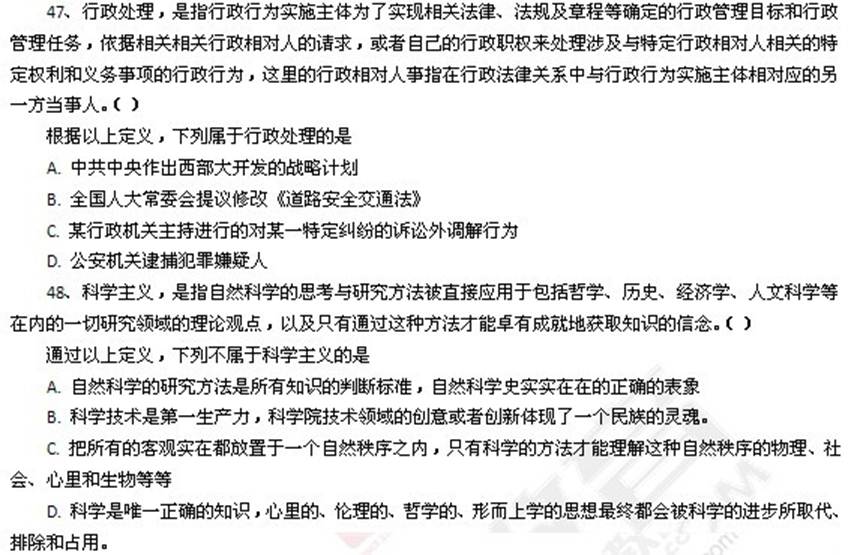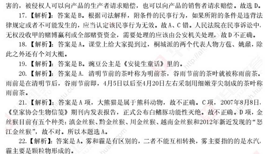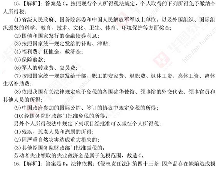 13.【解析】:答案是D。国家主席公布法律权,即国家法律经全国人民代表大会及其常务委员会通过后,由国家主席向社会公布后才能生效,这是中华人民共和国立法程序的最后一个环节。全国人民代表大会常务委员会和全国人大是我国的权力机关,具有制定法律和对法律的解释权,最高人民法院是我国的审判机关,不具有公布法律的权力。所以A、B、C项都不正确,故选D。