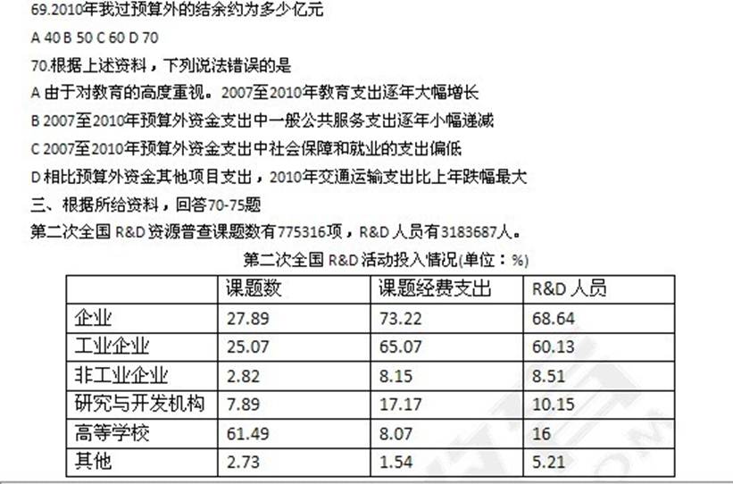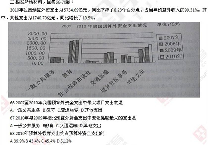 61.选D。2011年我国社会服务支出同比增长率=16.65%+5.5%=22.15%