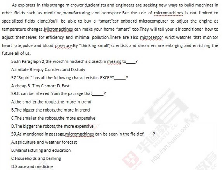 59.As mentioned in passage,micromachines can be seen in the field of____?