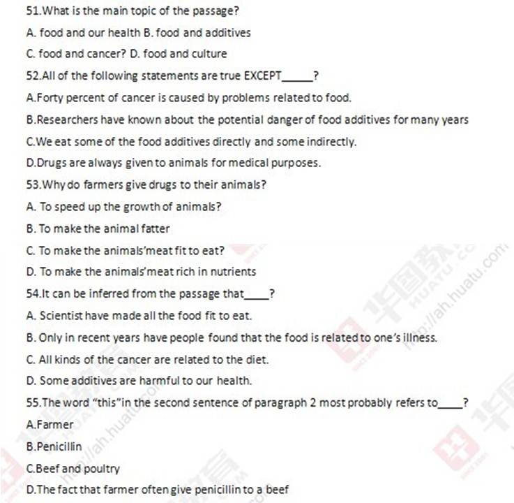 The additives which we eat are not all so direct.Farmers often give penicillin to beef and poultry,and because of this, penicillin has been found in the milk of treated cows.Sometimes similar drugs are simply trying to fatten the animals in order