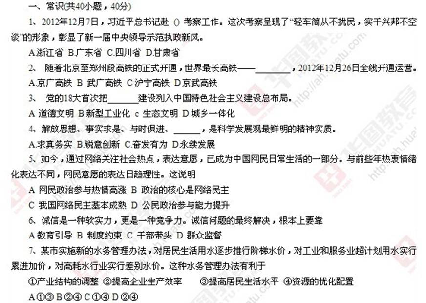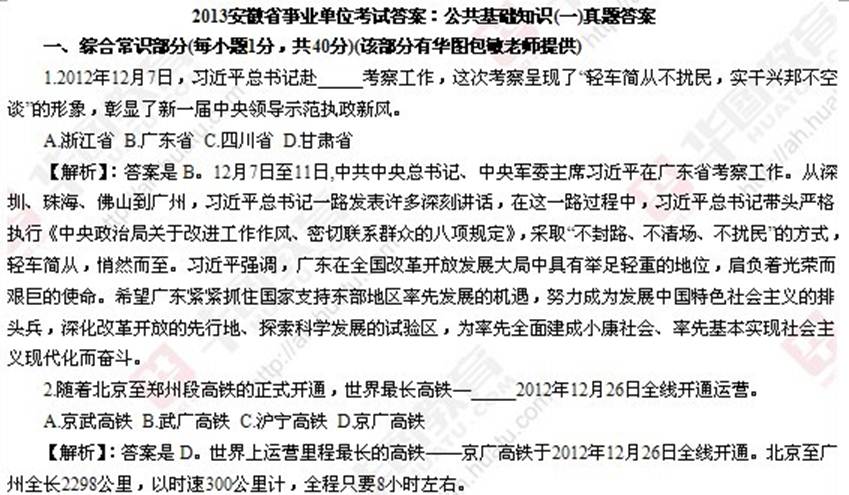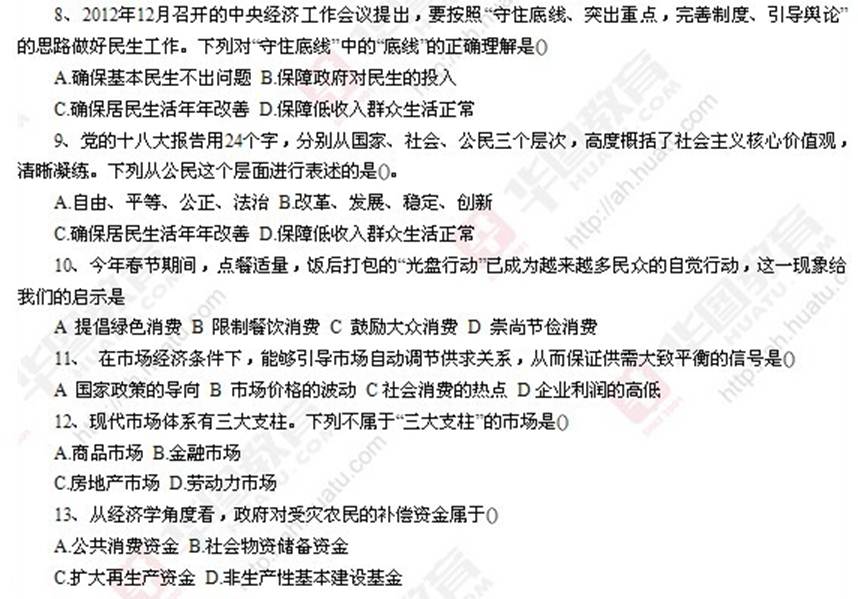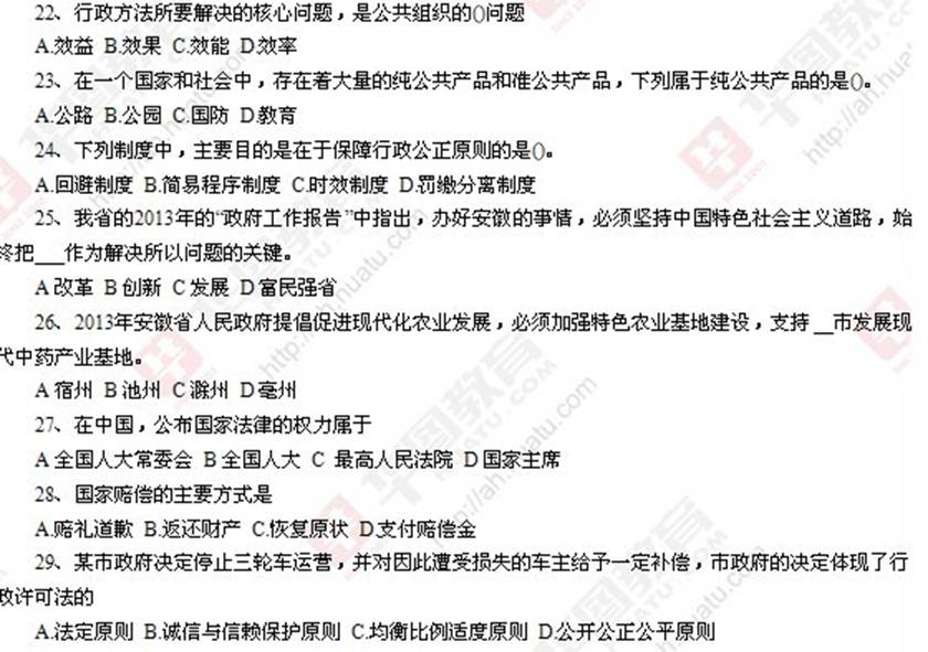 2013安徽省事业单位考试真题:公共基础知识一