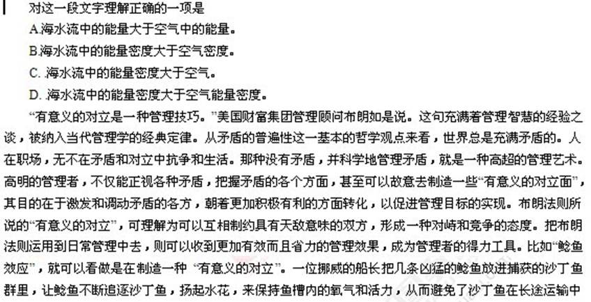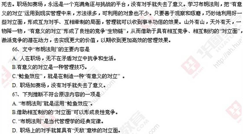 69、【解析】答案是A项。文章的核心关键词是“布朗法则”和“有意义的对立”。只有A项进行了全面的概括。BCD三项是文中举例说明的部分,故排除。