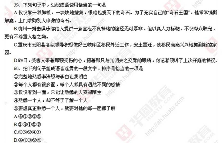 56、下列句子中,没有语病的一项是