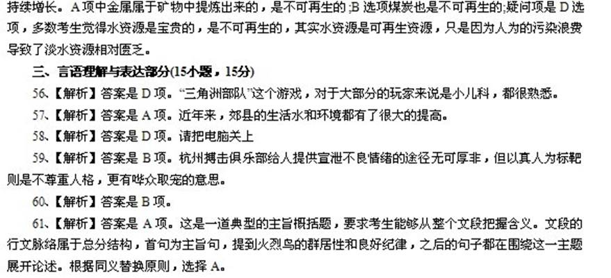 三、言语理解与表达部分(15小题,15分)