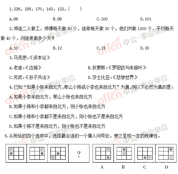 2012年浙江省事业单位真题精选职业能力倾向测验(二)