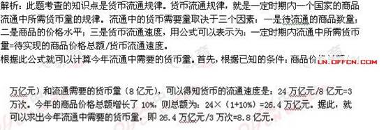 24万亿元,流通需要量为8亿元。若今年该国商品价格总额增长10%,其他条件不变,今年流通需要的货币量为( )