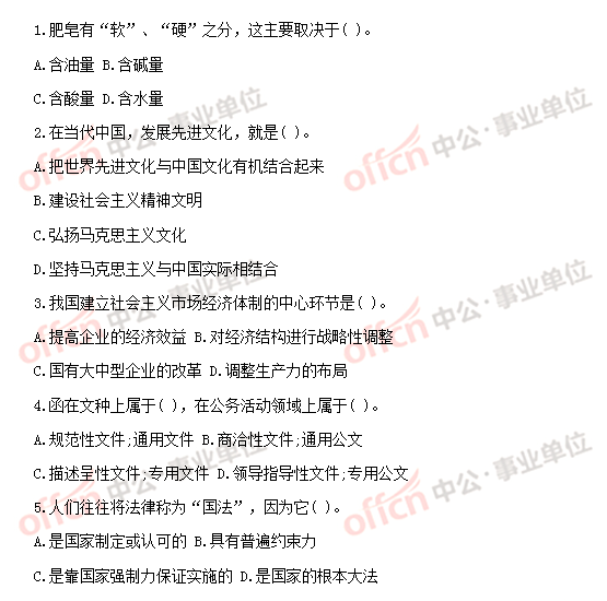 2011年内蒙古自治区事业单位招聘笔试真题精选公共基础知识(三)
