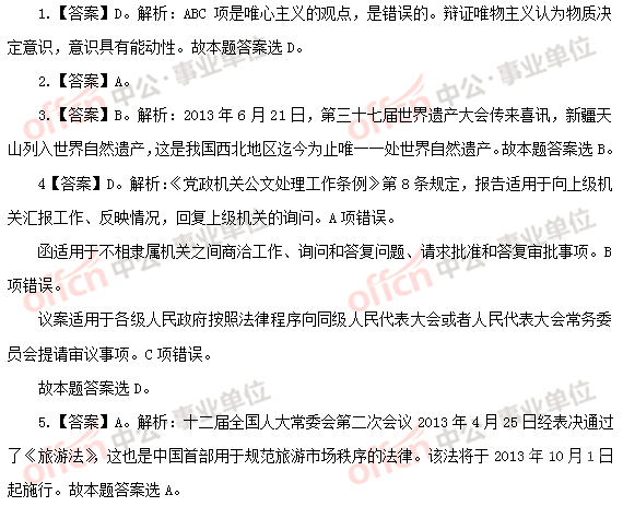2013年湖南省事业单位真题精选公共基础知识(二)