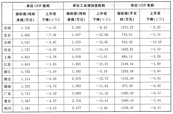 96. D[解析] 比较表中全国及各省市的单位GDP能耗指标值可知,河北、湖北、湖南、重庆、四川5个省市的单位GDP能耗超过了全国平均水平。
