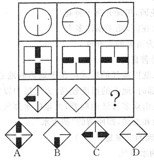 54. B[解析] 每行后两个图形叠加并顺时针旋转90°后得到第一个图形。