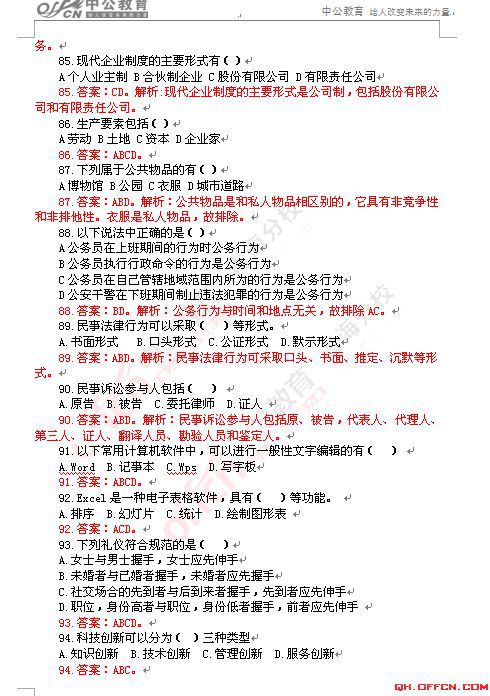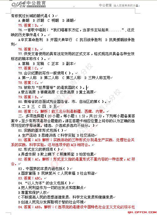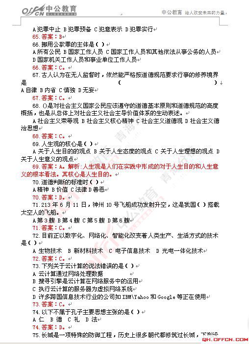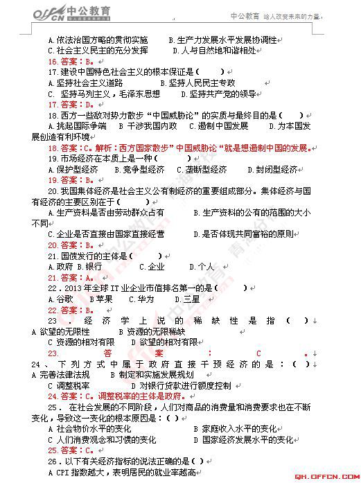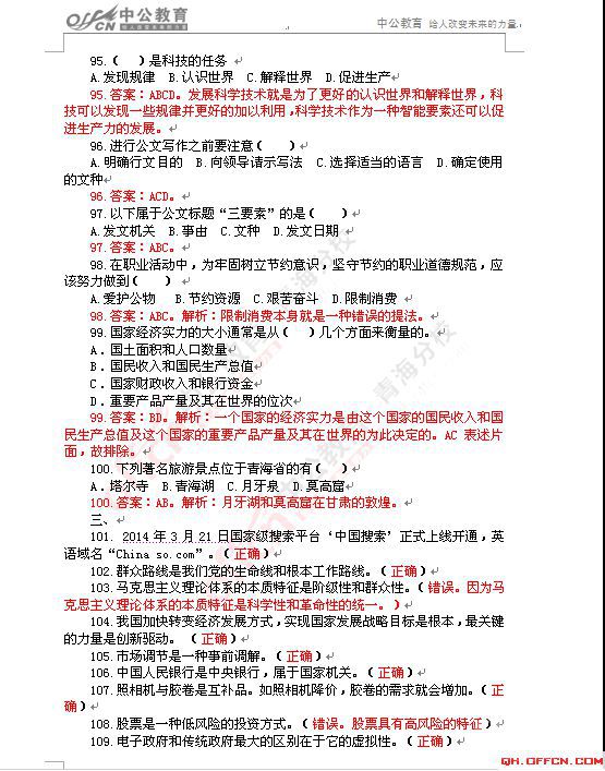 2014青海事业单位公共科目(公共基础知识真题及解析)