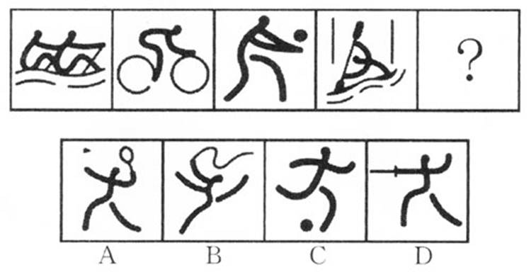 32. 从给出的选项中,选择最合适的一个填入问号处,使之呈现一定的规律性: