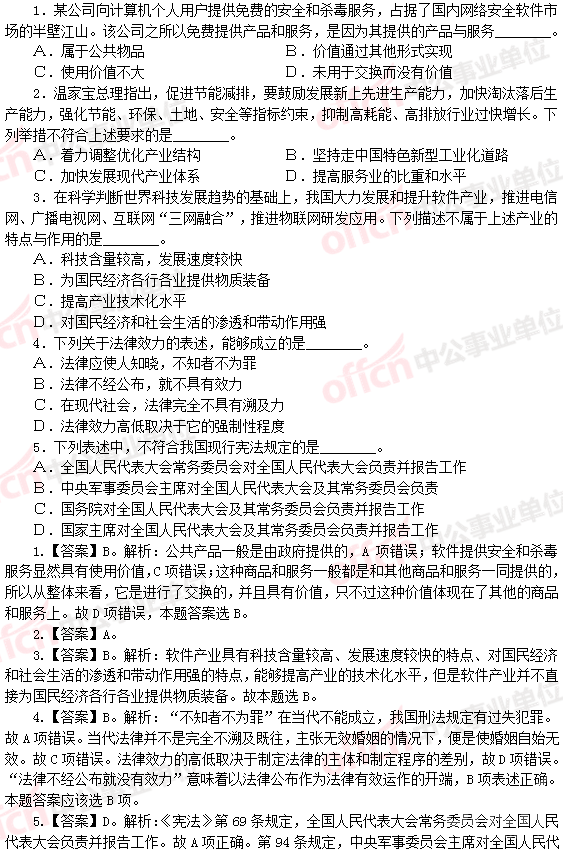 2011年秋季福建省省属事业单位公开招聘笔试真题精选综合基础知识(7)