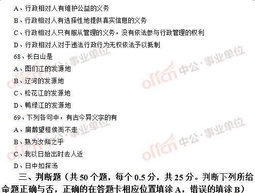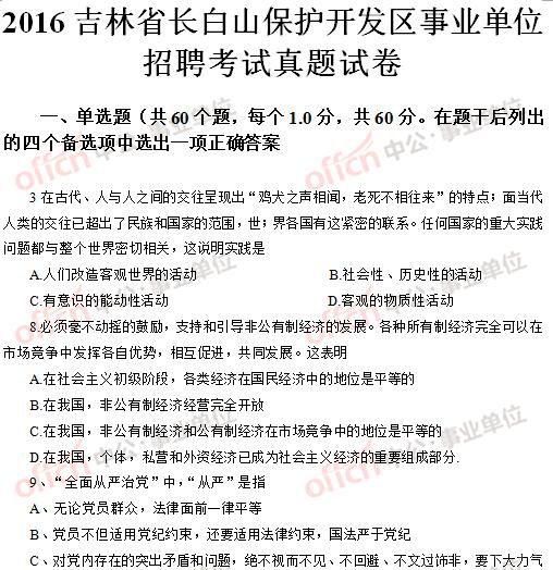 2016吉林省长白山保护开发区事业单位招聘108名工作人员笔试真题