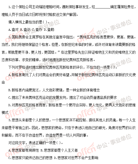 事业单位考试历年真题