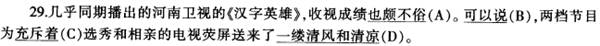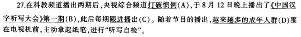 三、文稿校对(共15题) 本部分包括3篇短文,每篇短文都包含5个标有题号的部分;每个部分画线标注A、B、C、D4个选项,其中一项可能含有错别字、使用不当的词语、文字缺漏或冗余、语序不当、与前后文矛盾等错误。请仔细阅读,选出存在错误的选项。
