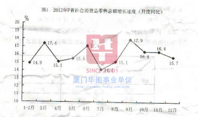 77..2011年12月份,F省社会消费品零售总额同比增量约为: