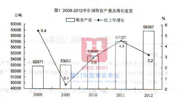 I.2008-2012年我国粮食产量逐年增加