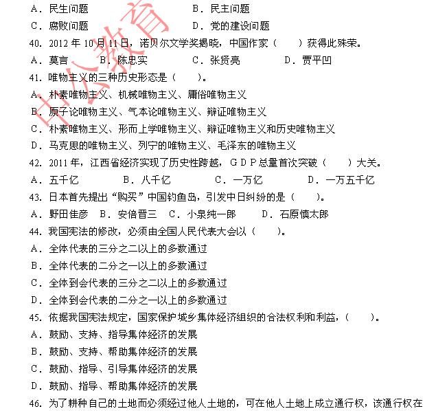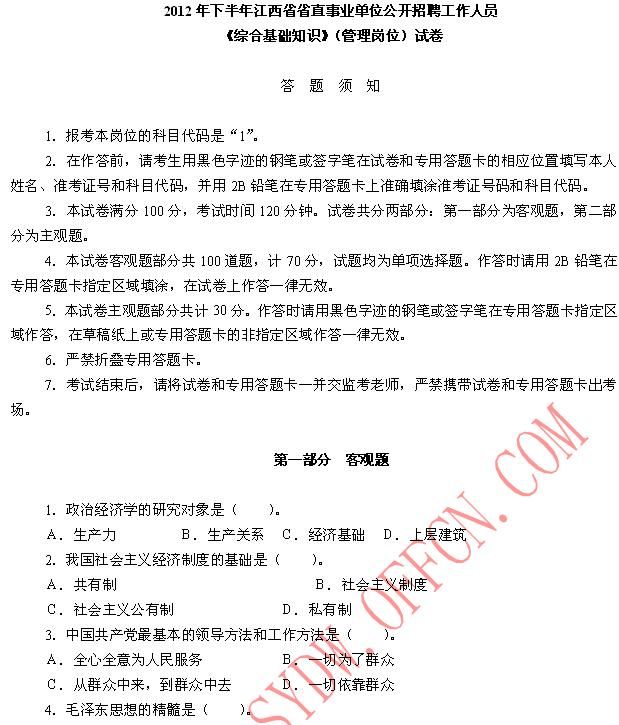 2012年下半年江西省省直事业单位招聘《综合基础知识》(管理岗位)真题附详解(一)