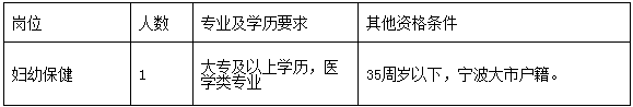 宁波国家高新区公共卫生管理服务中心妇幼保健工作人员1名。