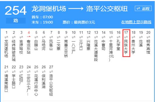 3. 龙洞堡机场:乘坐254路公交车,到贵州民族大学站下车。