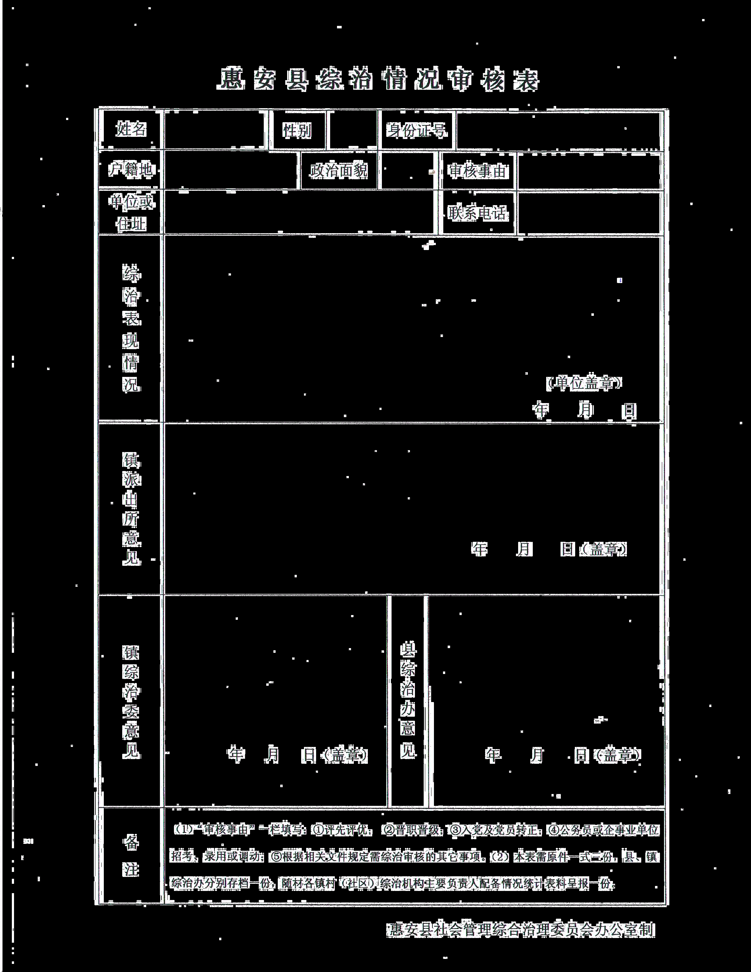 (4)惠安县综治情况审核表(经有关部门盖章)(见附件2);