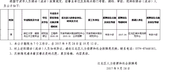 原标题:宁波市事业单位工作人员调动(流动)公示