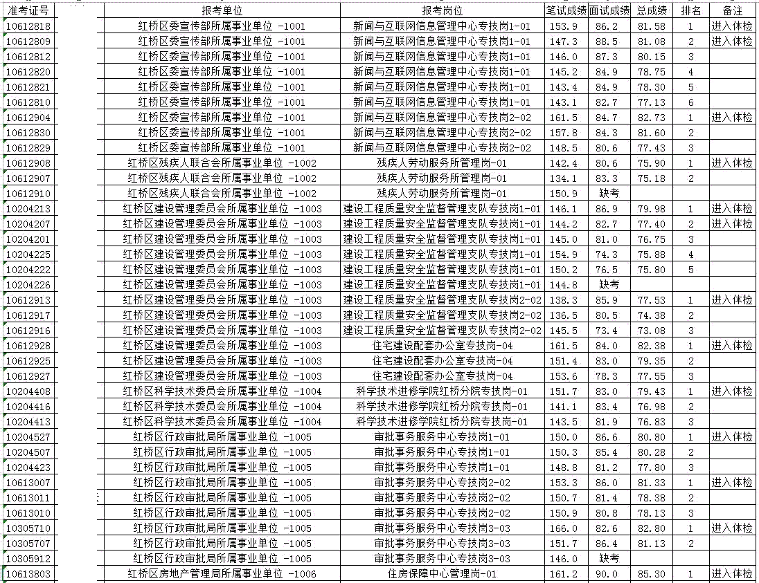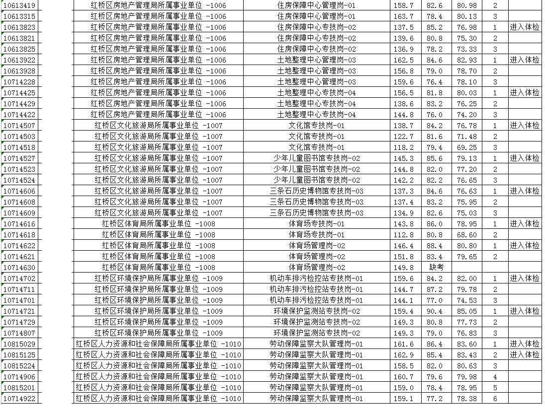 天津:2017年10月天津红桥区部分事业单位招聘工作人员总成绩公示