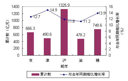 2003年第一季度五城市GDP情况图