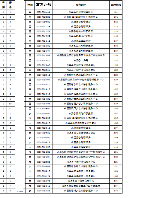 永嘉县下半年公开招聘事业单位工作人员考试体检名单