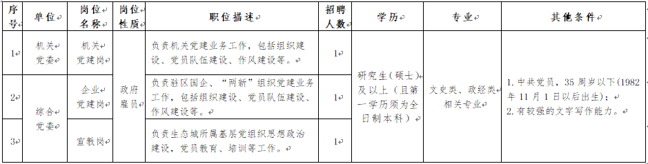 中新天津生态城是中国和新加坡两国政府重大合作项目,旨在建设一座和谐宜居的国际新城。为适应区域发展的需求,中新天津生态城管委会现面向社会公开招聘党务工作人员3名,现将有关事项公告如下: