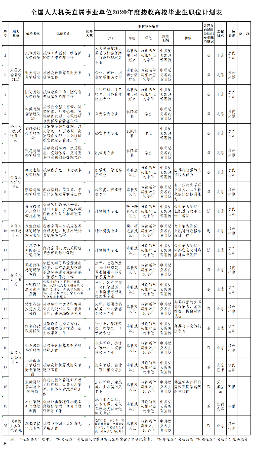 根据工作需要,全国人大机关直属事业单位拟面向2020年全国高校应届毕业生公开招聘事业编制工作人员21名(详见职位计划表),现将有关情况公告如下: