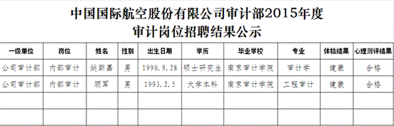 中国国际航空股份有限公司审计部2015年度招聘结果公示.xls