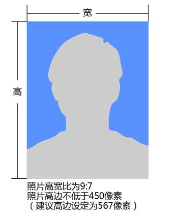 2.图像规格:照片高宽比为9:7(参见电子照片图像样例);照片高边不低于450像素(建议高边设定为567像素),图像文件大小在50kB以内,JPG格式。 3.要求:近期(三个月内)正面免冠彩色半身电子证件照,照片清晰、无污点、无损坏。照片背景颜色应为白色或淡蓝色,背景应与脸部、头发和上衣颜色有明显区别。 4.照片可请照相馆、数码店等协助拍摄并调整至相应文件大小(50kB以内),不得进行任何修饰。 交通运输部海事局2015年5月14日