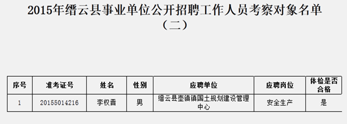原标题:2015年缙云县事业单位公开招聘工作人员考察公示(二)