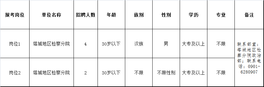 (2)笔试具体时间将通过“塔城地区检察”微信公众号发布,请及时关注。