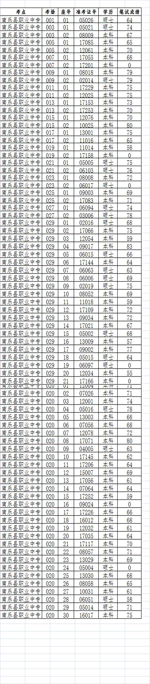 河南:2015年09月濮阳南乐县事业单位引进高学历人才笔试成绩