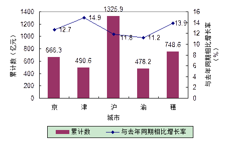 1.2003年第一季度GDP总量和增速均居同一位的城市有