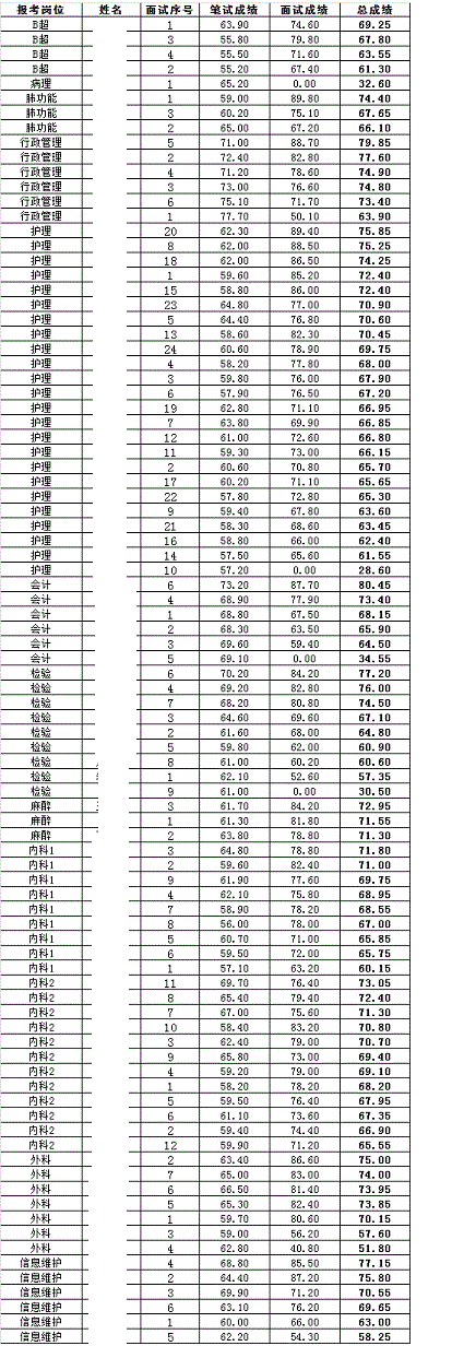 山东:2016年07月省属事业单位招聘初级岗位工作人员成绩公示(山东胸科医院)