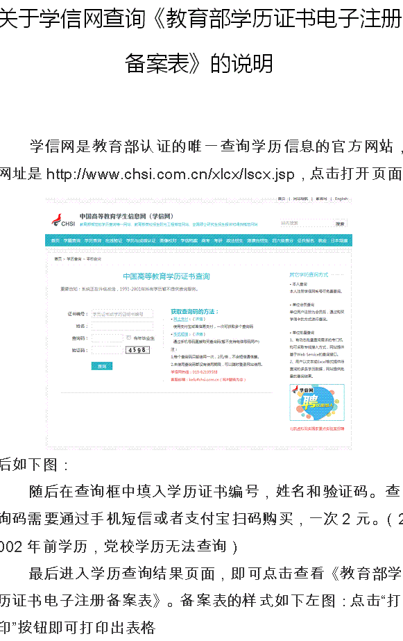 关于学信网查询《教育部学历证书电子注册备案表》的说明.doc