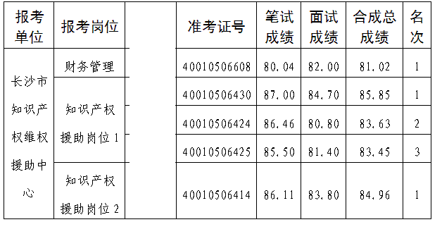 湖南:2016年10月湖南长沙市知识产权局所属事业单位招聘拟录名单公示