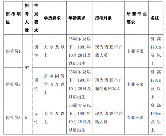 因工作需要,诸暨市城市管理行政执法局本级及受有关乡镇街道(开发委)委托拟向社会公开招考劳务派遣制协管员若干名,现将有关事项明确如下: