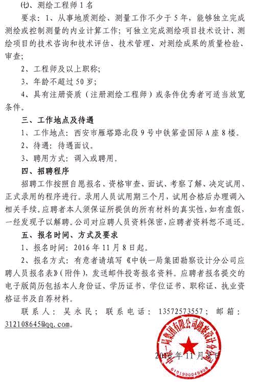 原标题:中铁一局集团勘察设计分公司2016年招聘启事