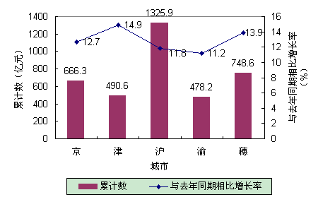 Ⅰ.2003年第一季度五个城市的GDP总量均实现了两位数增长